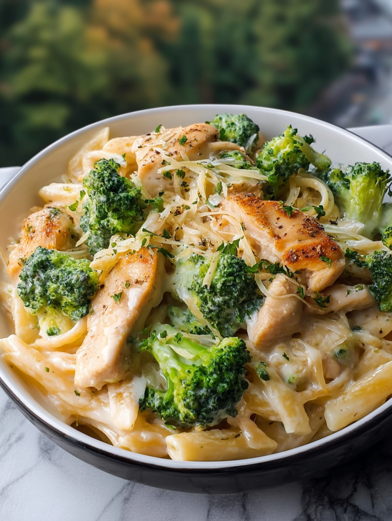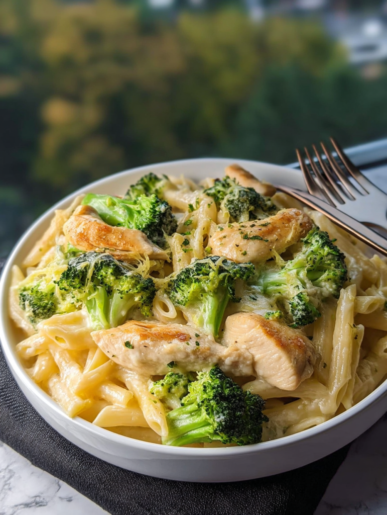 Keywords: chicken alfredo, easy dinner, pasta with broccoli, creamy chicken pasta, quick weeknight dinner