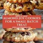 Keywords: almond joy cookies, easy cookie recipe, small batch cookies, coconut chocolate cookies