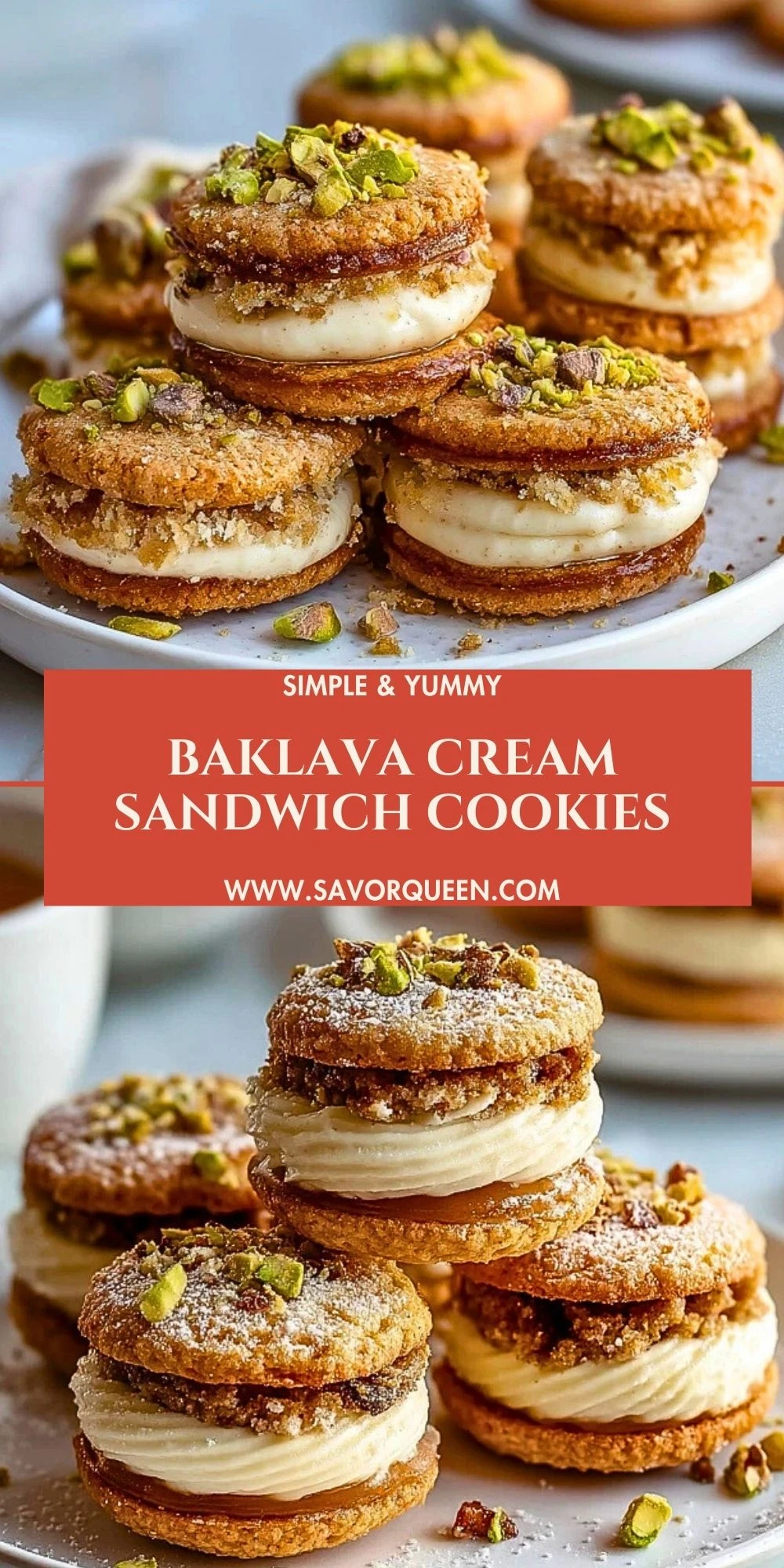 Craving something sweet, nutty, and creamy all in one bite? These Baklava Cream Sandwich Cookies bring a delightful fusion of textures and flavors into one elegant treat. Flaky cookie layers surround a rich, spiced walnut filling and a smooth vanilla cream cheese center. A drizzle of honey and crushed pistachios top them off with flair. Perfect for easy dessert ideas, holiday cookie trays, and bite-sized food ideas with a sophisticated twist. This is one of those easy recipes that feels anything but basic—ideal for when you want to wow without the stress. Whether you’re seeking quick baking projects, unique cookie recipes, or dessert ideas with a Mediterranean twist, this one hits all the sweet spots.