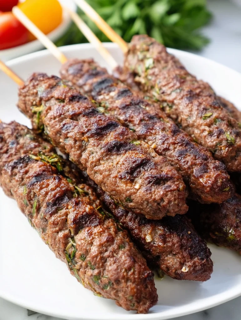 You’ll want to use ground beef that has a bit of fat in it—ideally an 85/15 blend. This balance keeps the kebabs juicy and prevents them from drying out on the grill. Leaner beef can be used but will need extra olive oil or a binder to help retain moisture.