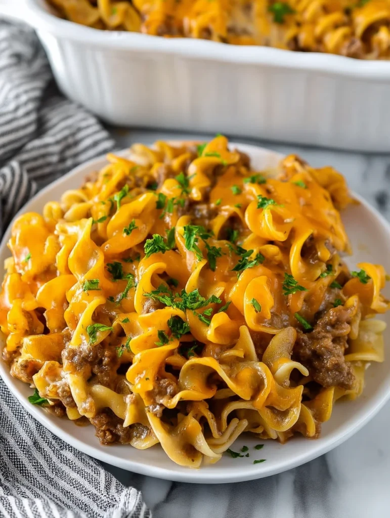 Keywords: beef casserole, noodle bake, easy dinner, comfort food