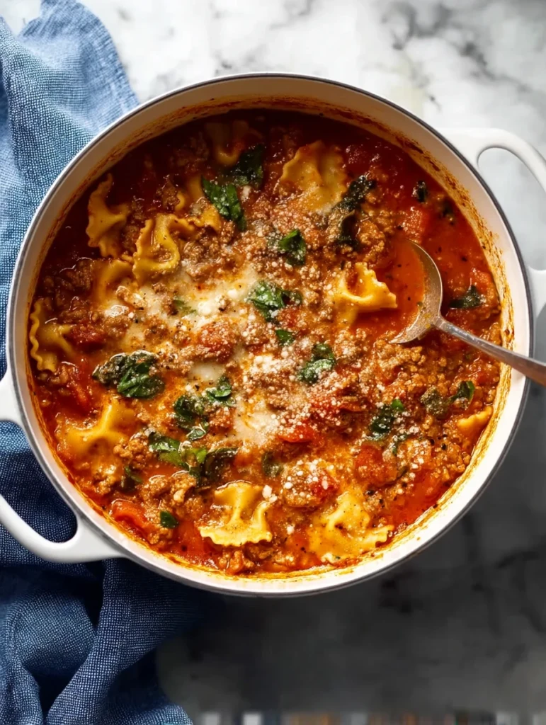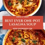 Keywords: lasagna soup, one pot meal, easy dinner, comfort food, quick soup, Italian soup, hearty soup