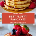 Get ready to flip the fluffiest pancakes ever! These Best Fluffy Pancakes are light, tender, and golden with just the right amount of sweetness. Perfect for quick breakfast cravings, weekend brunch spreads, or easy dinner ideas (yes, pancakes for dinner!). Made with pantry staples and ready in minutes, this easy recipe will become a go-to for delicious food ideas that satisfy everyone. Whether you’re stacking them high with syrup or topping them with berries, they’re a warm, cozy bite of comfort that never goes out of style.
