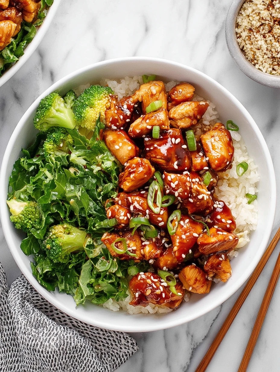 Keywords: easy dinner, teriyaki chicken, healthy bowl, rice bowl, quick meal