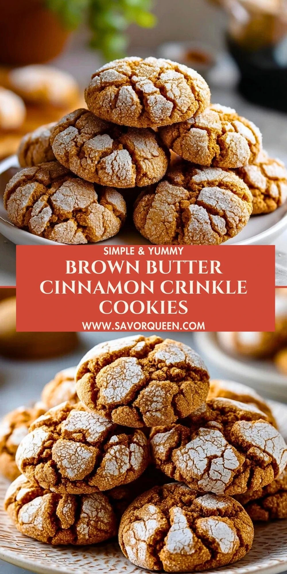 Keywords: easy cookie recipe, cinnamon cookies, holiday cookies, crinkle cookies, brown butter cookie