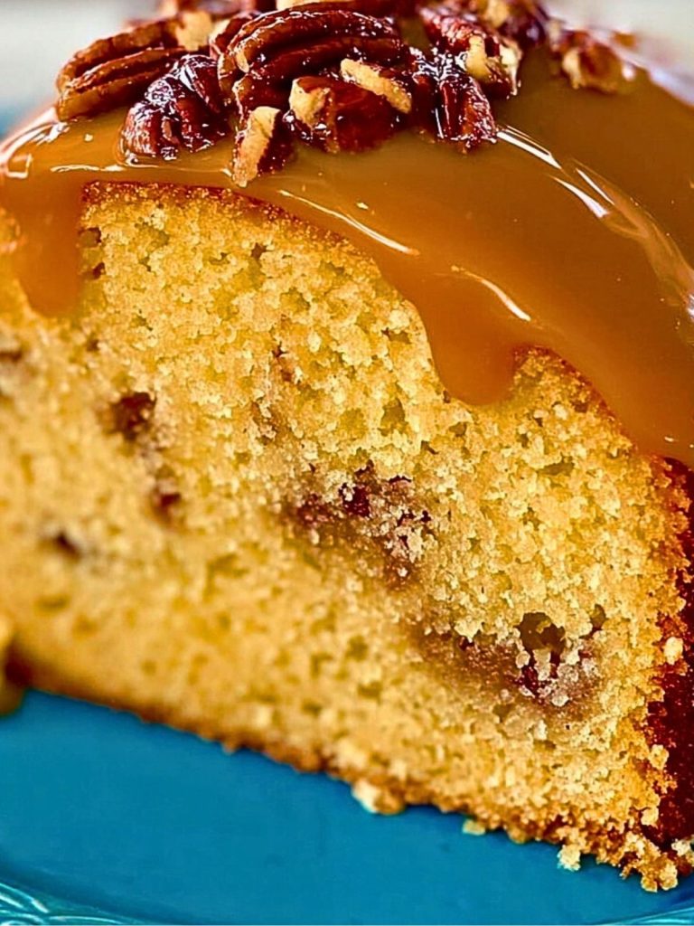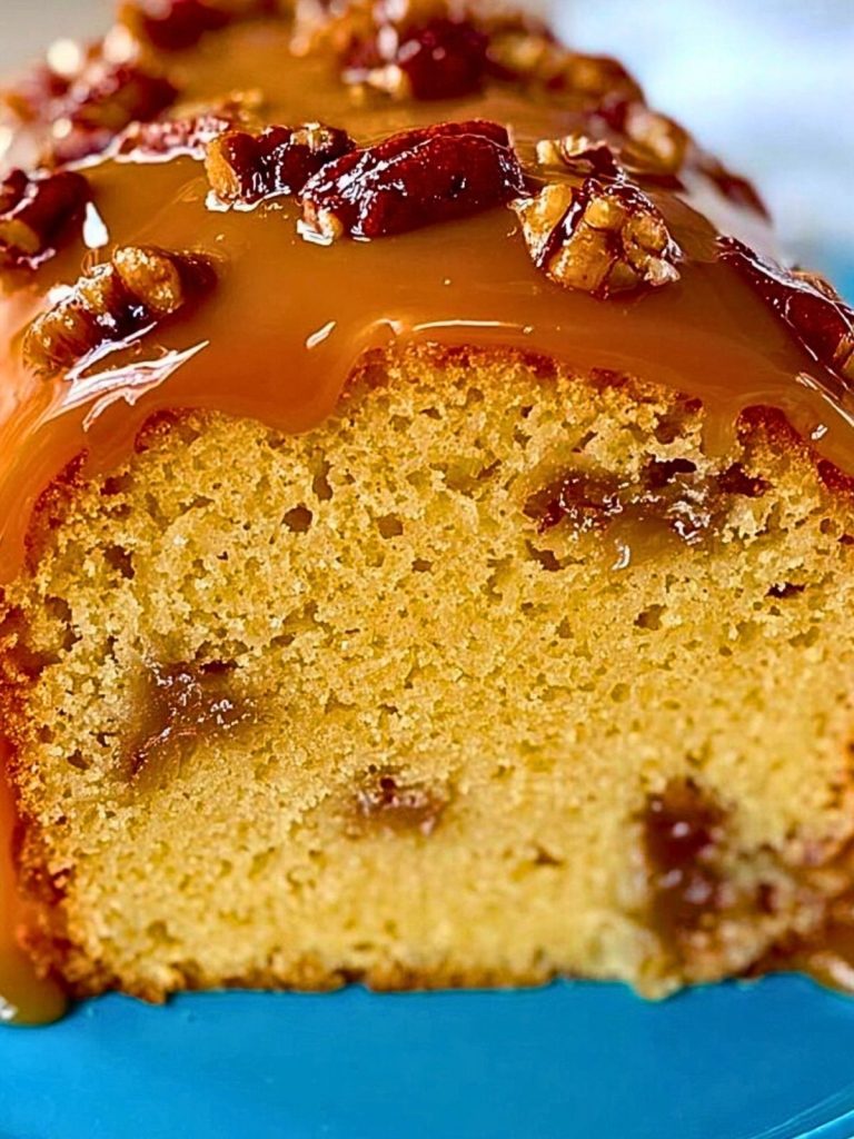 Serve slices of this rich pound cake on their own or with a scoop of vanilla ice cream for the ultimate indulgence. The glossy caramel topping gives it enough sweetness that no frosting is needed. It’s perfect for special occasions, cozy afternoons, or as a dessert centerpiece for your holiday spread.