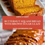 Keywords: fall baking, butternut squash recipe, quick bread, brown sugar glaze, easy loaf recipe