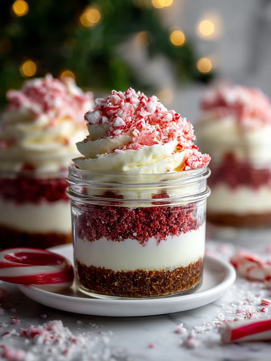 Finish with a swirl of cheesecake mousse and a generous sprinkle of crushed candy canes.