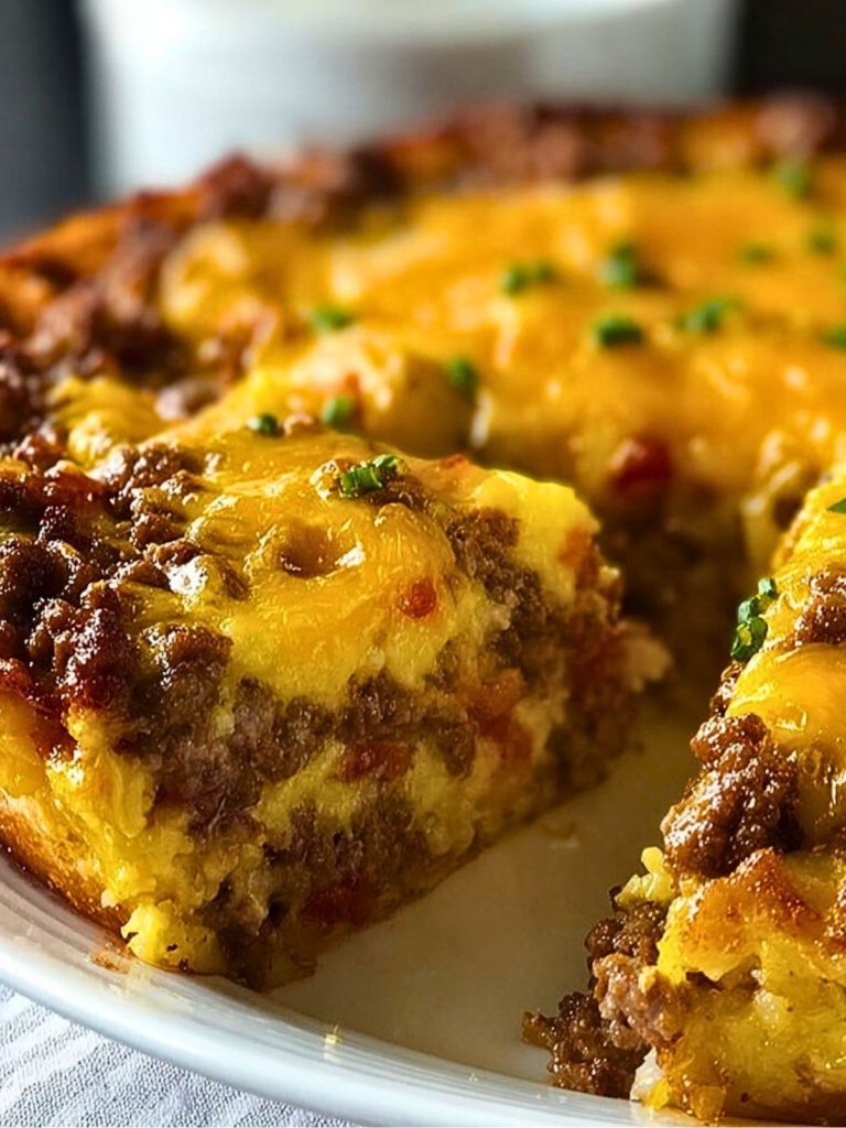 You don’t need a traditional pie crust here. Cheeseburger pie uses a simple Bisquick-style batter or even crescent roll dough that acts as a soft, supportive base. It gives just the right amount of fluff and firmness to hold that juicy beef and cheese together without overwhelming the flavor. If you want a low-carb version, you can even skip the base entirely and just bake the beef mixture with eggs and cheese to hold it firm like a crustless quiche.
