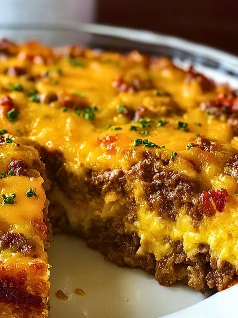 Skip the drive-thru and make this insanely satisfying Cheeseburger Pie right in your kitchen! With juicy ground beef, sharp cheddar cheese, and a fluffy Bisquick-style crust, this easy dinner recipe brings all the flavors of a cheeseburger in a cozy sliceable bake. Perfect for quick weeknight dinners, family gatherings, or anytime you’re craving comfort food with a twist. Whether you’re looking for easy dinner ideas, hearty food ideas, or a kid-friendly meal, this recipe delivers every time. It also doubles as a fun breakfast-for-dinner option. Quick to prep, easy to customize, and packed with flavor — a total must-try!