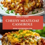 Get ready for the ultimate comfort food dinner with this Cheesy Meatloaf Casserole! It combines creamy mashed potatoes, flavorful seasoned beef, melty cheddar and mozzarella, and a crispy bacon topping into one irresistible layered dish. Whether you’re planning a hearty family dinner, a cozy weeknight meal, or looking for easy dinner ideas to prep ahead, this dish delivers big flavor with minimal effort. From quick dinner to comfort food classic, this easy recipe hits every mark for taste and convenience.