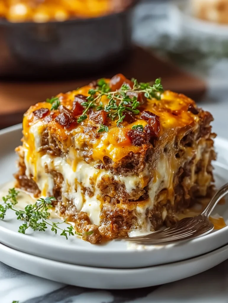This Cheesy Meatloaf Casserole is the ultimate comfort food mashup. It combines the juicy savoriness of classic meatloaf with rich, melty cheese and a creamy mashed potato base, all layered like a lasagna and topped with crispy bacon. Every bite delivers hearty satisfaction, with gooey cheese pulls and smoky bacon crunch that make it irresistible.