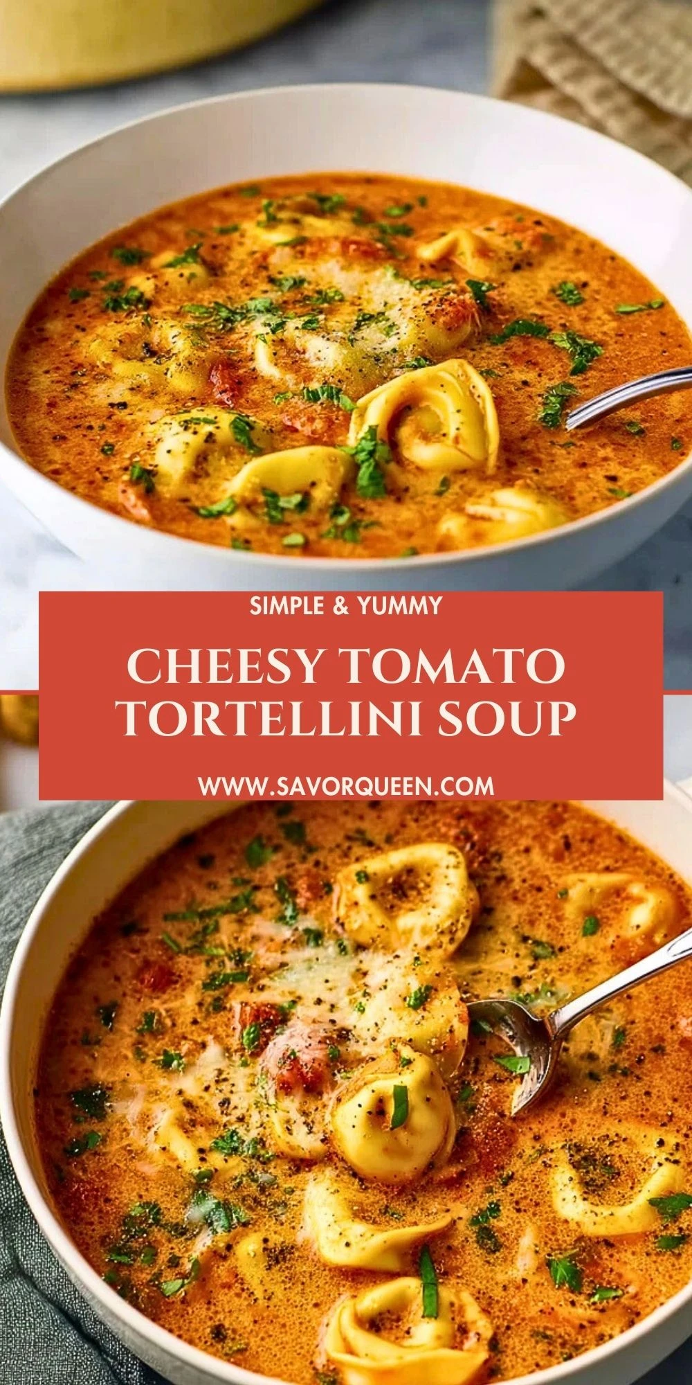Cheesy Tomato Tortellini Soup