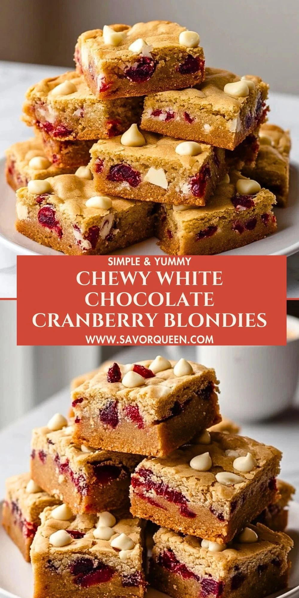 Keywords: chewy blondies, white chocolate cranberry blondies, dessert bars, easy dessert, holiday baking, cookie bars