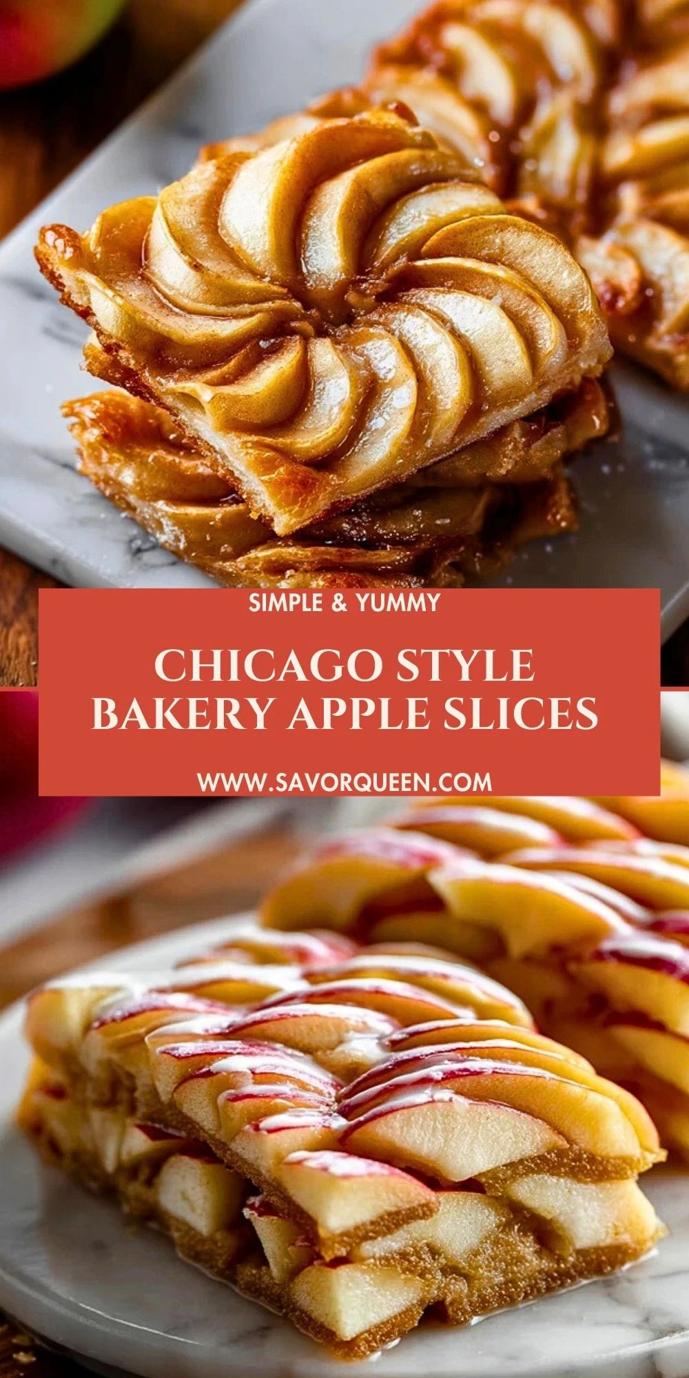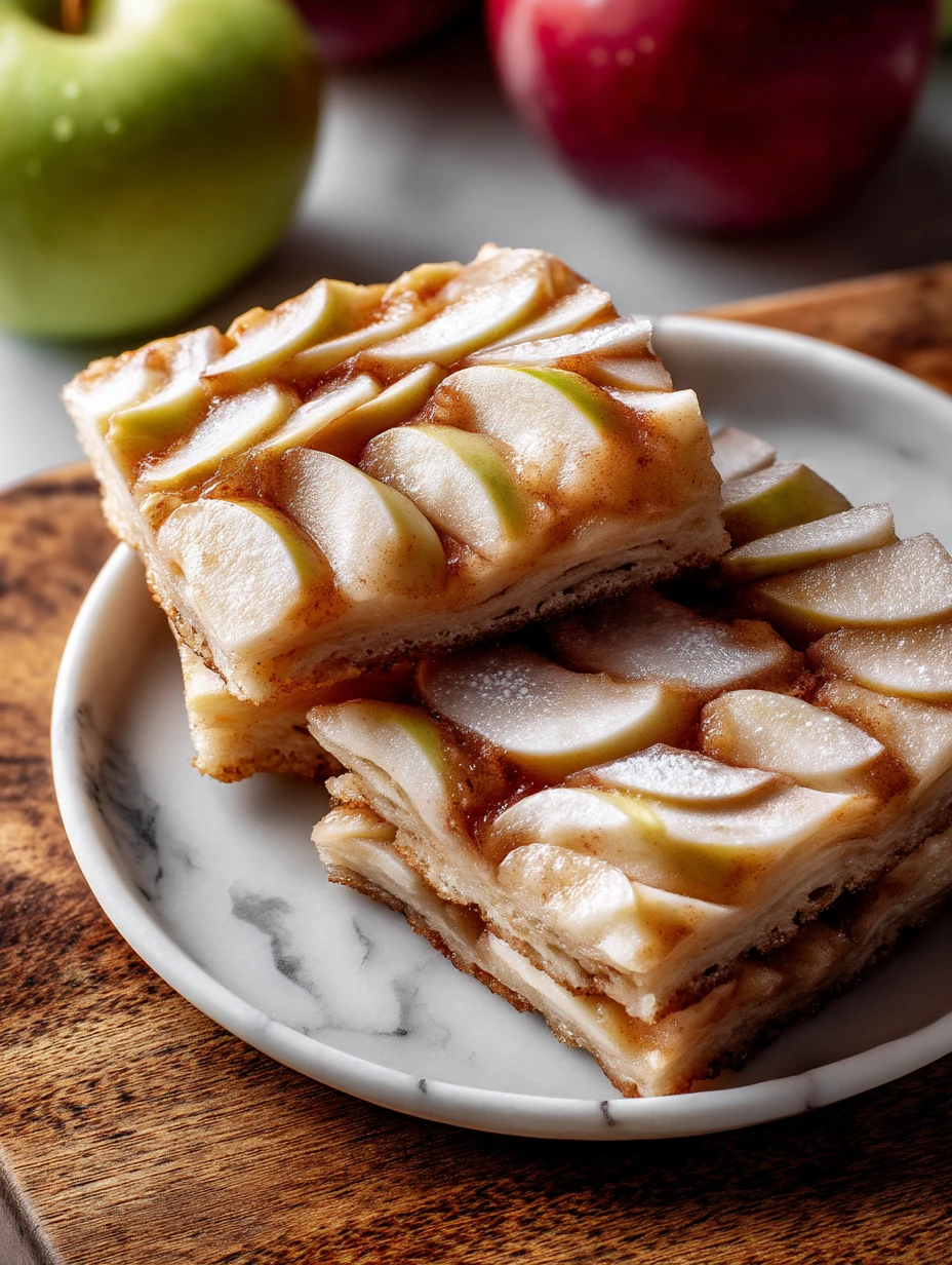 Chicago Style Bakery Apple Slices are the kind of old-school dessert you’d spot in a neighborhood bakery window—golden, flaky layers stacked high with tender cinnamon apples and finished with a sweet vanilla glaze that drips down the sides. Each bite delivers that perfect contrast: crisp pastry on top, soft apple filling in the center, and a buttery base that holds it all together.