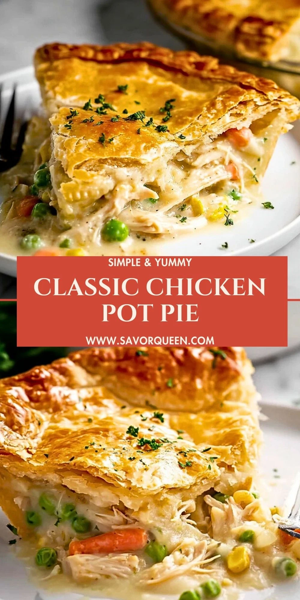 Keywords: classic chicken pot pie, easy dinner idea, quick comfort food, chicken recipe, hearty pie, puff pastry dinner