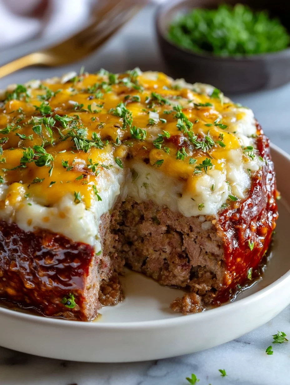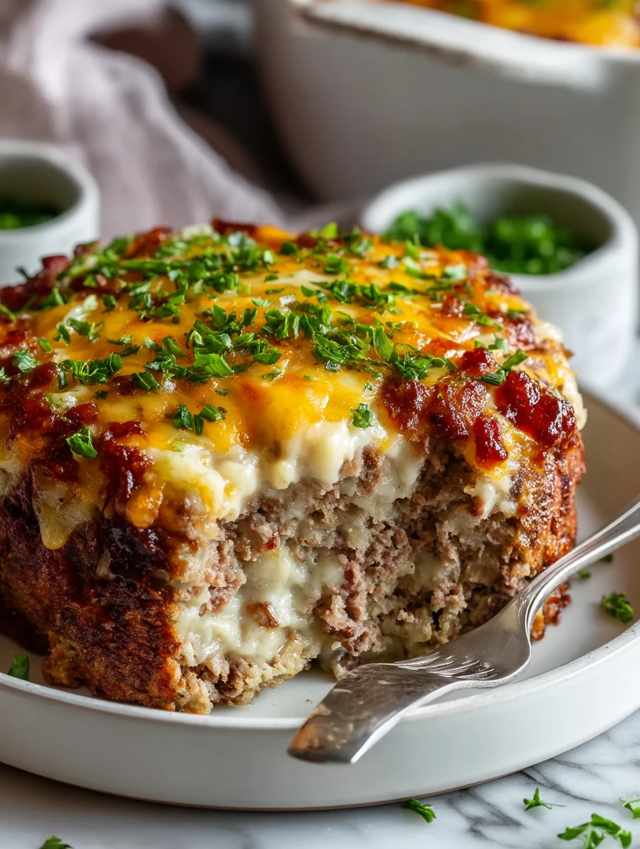 Keywords: loaded meatloaf, comfort food, easy dinner, cheesy potato casserole