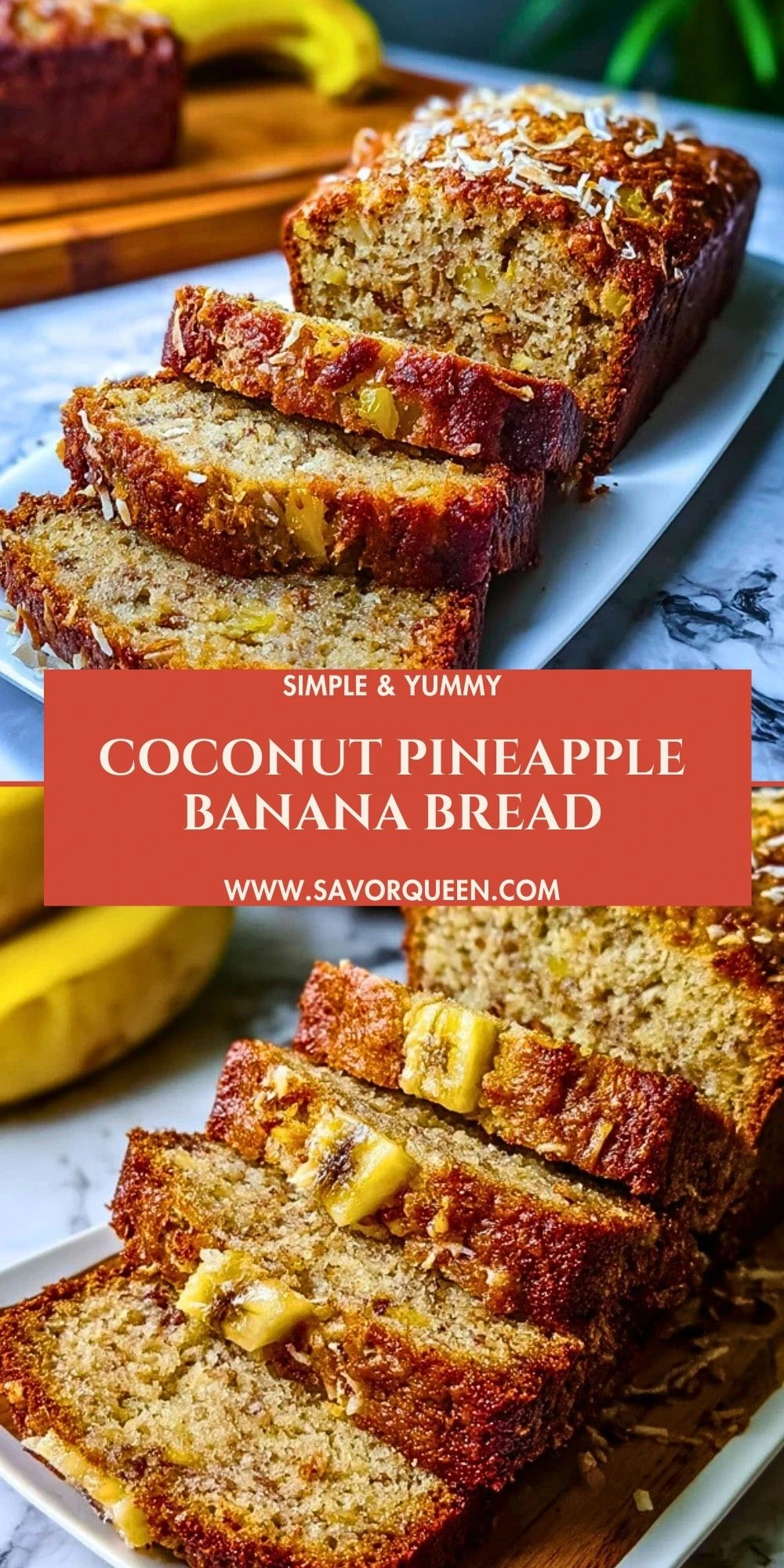 Keywords: banana bread, coconut banana bread, pineapple banana bread, tropical bread, easy banana bread, breakfast idea