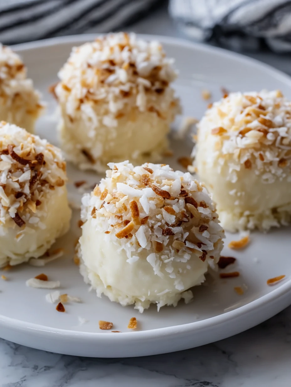 Keywords: coconut cheesecake bites, no-bake dessert, easy cheesecake recipe, coconut dessert, quick party treat