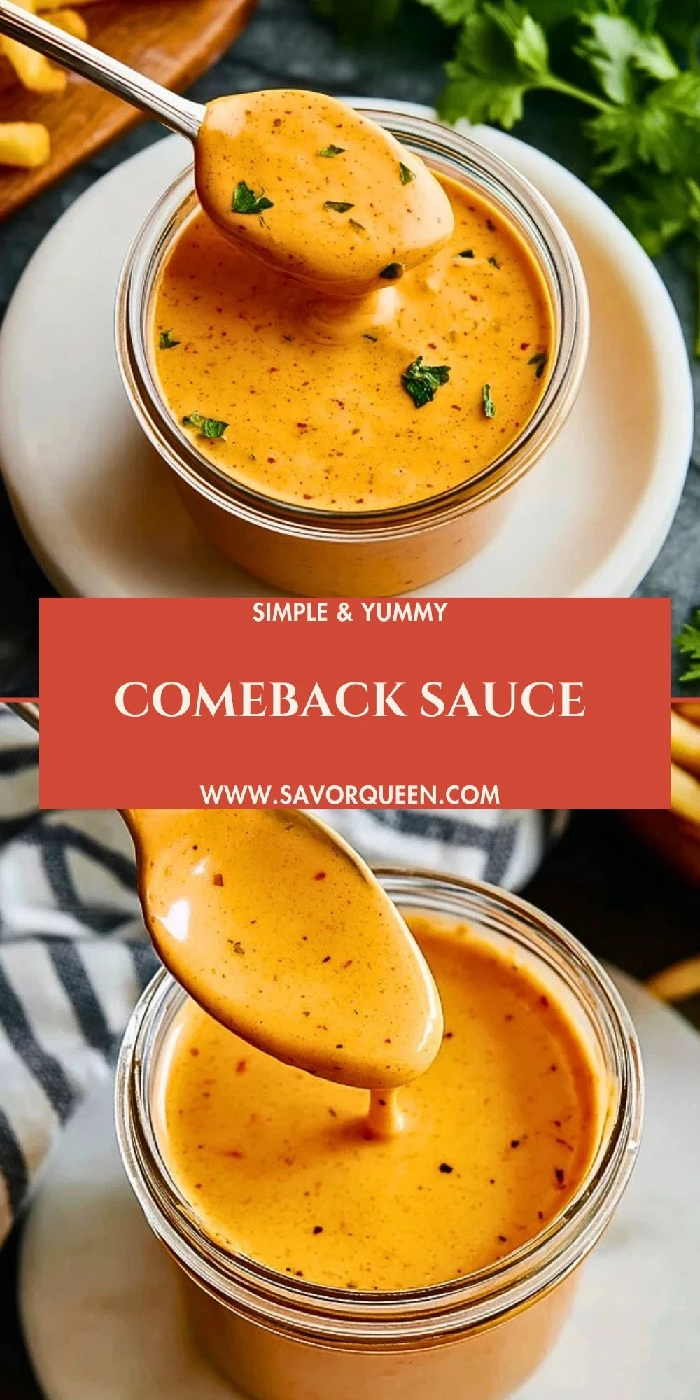 This spicy and creamy Southern-style Comeback Sauce is the ultimate condiment for dipping, drizzling, and spreading. Made with pantry staples like mayonnaise, ketchup, hot sauce, and a blend of spices, it’s a bold, zesty flavor booster that elevates everything from fries to burgers. Perfect for meal prep, it stores well in the fridge and just gets better with time. If you’re looking for food ideas or easy recipes to add to your collection of dinner ideas, quick snacks, or side sauces, this is your go-to condiment.