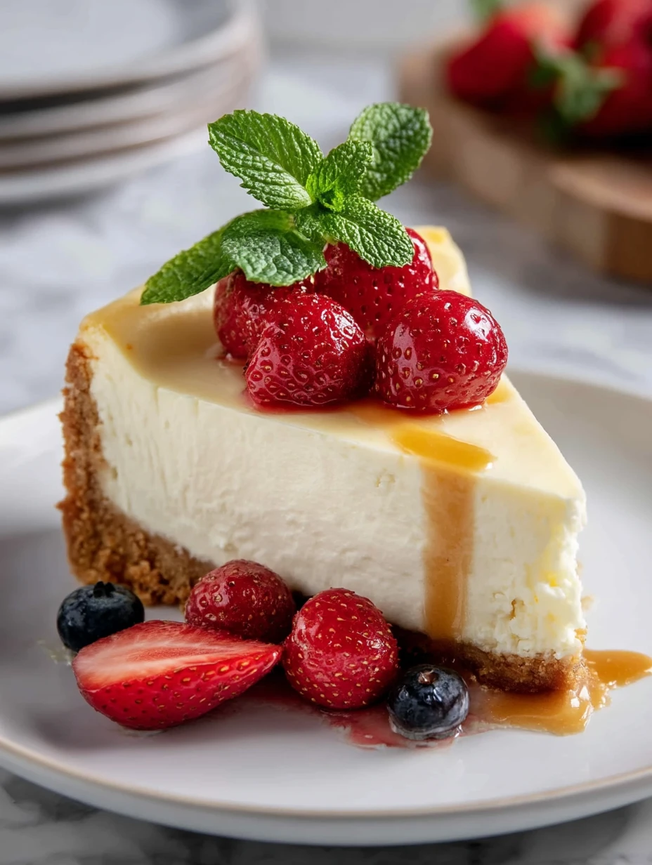 The vibrant burst of berries complements the tangy cheesecake beautifully.