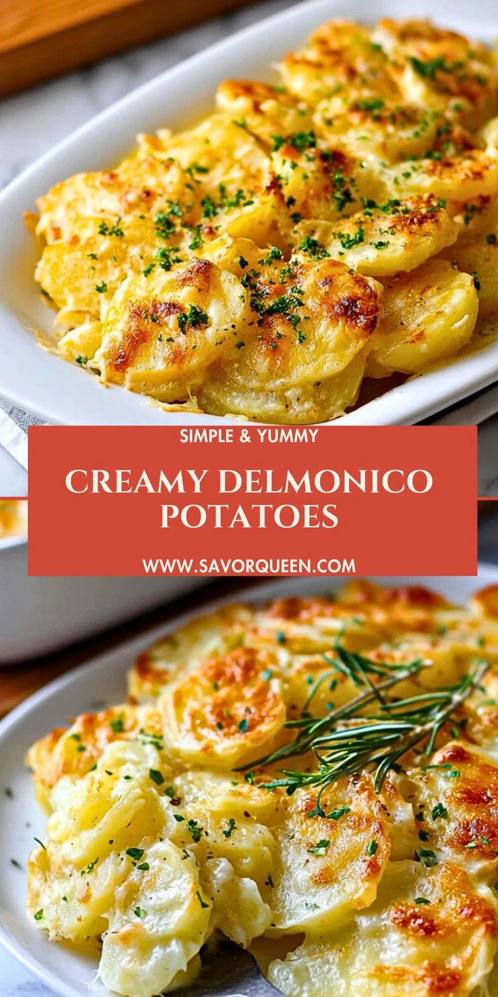 Treat yourself to the ultimate in comfort food with these Creamy Delmonico Potatoes—a rich, cheesy baked side dish perfect for holidays, cozy dinners, or anytime indulgence. Thinly sliced russet potatoes are bathed in a silky cream sauce, layered with cheddar and parmesan, and baked to golden, bubbling perfection. Ideal for serving with roast meats, fried chicken, or classic green veggies, this easy recipe makes for an irresistible addition to your favorite dinner ideas. Whether you’re searching for a creamy potato casserole, hearty food ideas, or just a quick side for an easy dinner, this is your new go-to.