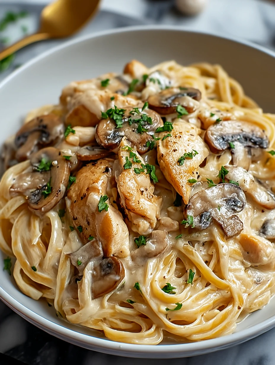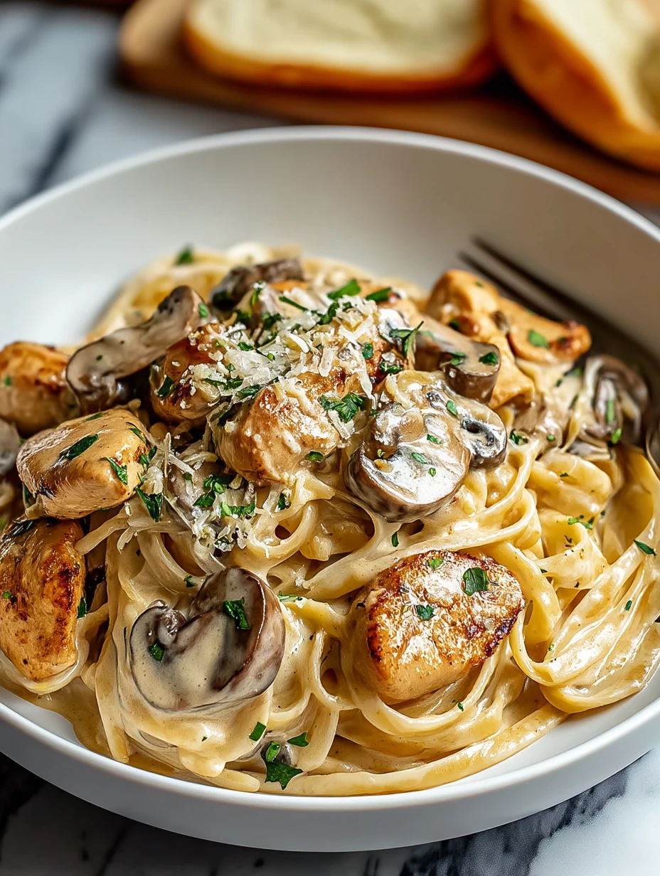 There’s something undeniably comforting about a bowl of creamy pasta. When tender chicken and savory mushrooms meet a rich, garlicky cream sauce over fettuccine, you get a dinner that’s both elegant and satisfying. This Creamy Garlic Chicken & Mushroom Pasta brings together simple ingredients in a way that delivers maximum flavor with minimal effort.