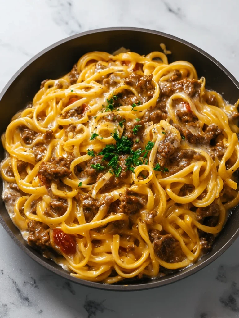 Fettuccine is our star in this recipe—it clings beautifully to the sauce and holds up well to the beefy goodness. However, you can easily swap in tagliatelle, rotini, or even penne if you prefer something shorter or with a twist. Just be sure to cook the pasta to al dente so it finishes perfectly in the sauce.