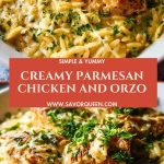 If you’re looking for a rich, creamy, and satisfying dish that comes together in one pan, this *Creamy Parmesan Chicken and Orzo* is the perfect answer. With tender chicken, buttery orzo pasta, and a luscious parmesan-infused cream sauce, it’s a comforting yet easy recipe ideal for quick dinners or cozy weekend meals. Whether you’re browsing for easy dinner recipes, creamy chicken ideas, or quick one-pan meals, this dish checks all the boxes. It’s a fantastic addition to your weeknight rotation or for impressing guests with minimal effort.