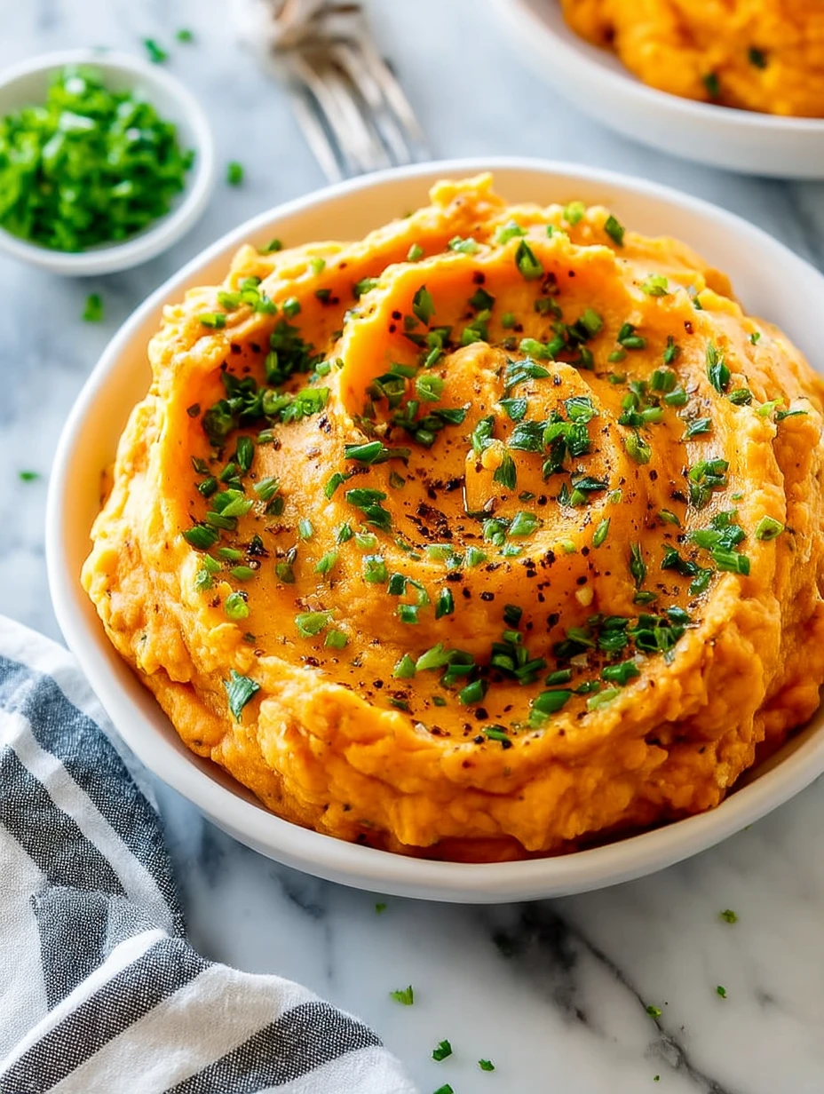 Golden, velvety, and just the right balance of sweet and savory, these Creamy Sweet Mashed Potatoes are an irresistible side that brings warmth and comfort to any table. Whipped to smooth perfection with a buttery richness, this dish transforms humble sweet potatoes into a silky dream.