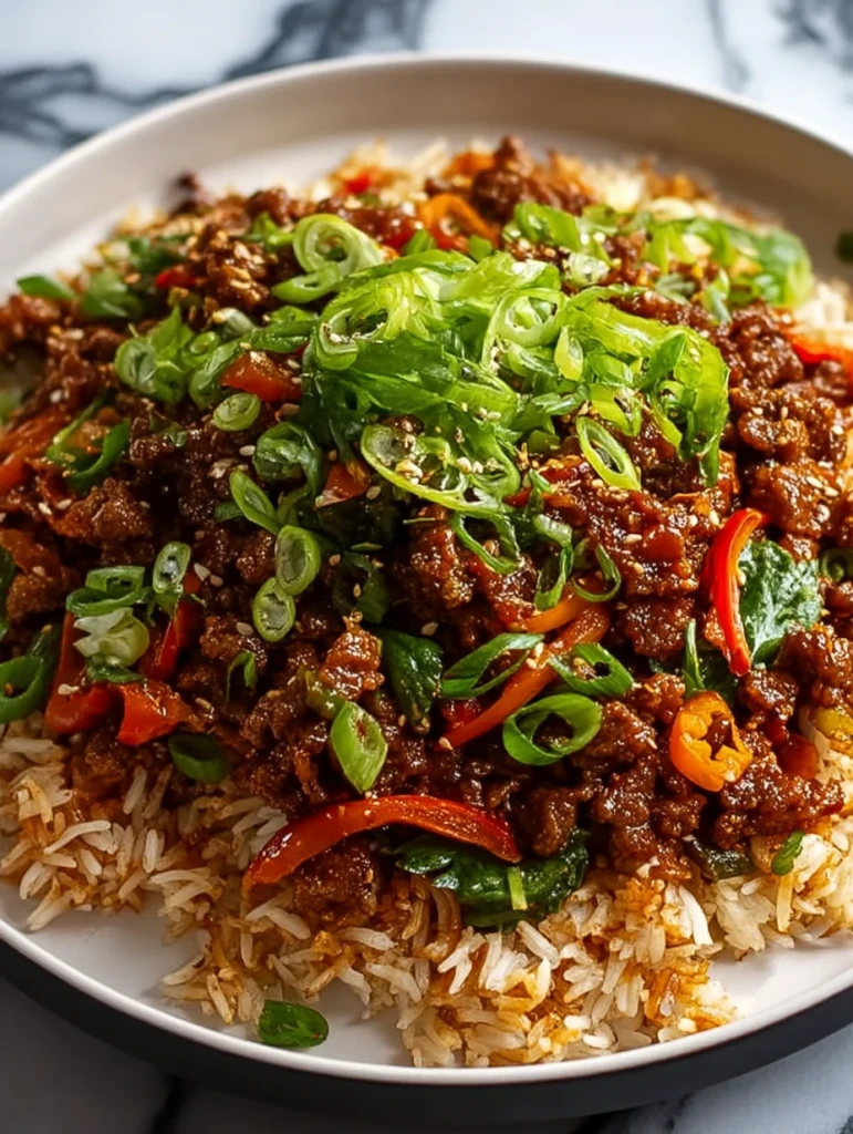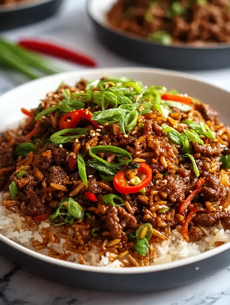 This Crispy Chilli Beef Rice is a game-changer for your weeknight dinners. Imagine golden-crispy strips of tender beef coated in a sticky, spicy-sweet sauce with a hint of garlic and ginger. Paired with fluffy steamed rice and topped with sesame seeds and vibrant chillies, it’s a full-on flavor bomb that balances crunch, heat, and sweet in every bite.