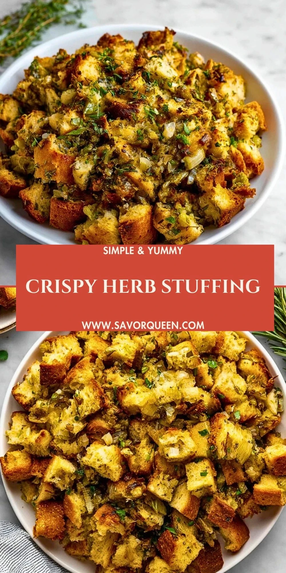 This golden, crunchy-on-top, tender-in-the-middle Crispy Herb Stuffing is everything a perfect holiday side dish should be. Packed with savory onions, fresh herbs, and buttery toasted bread, it’s the ultimate comfort food for Thanksgiving, Christmas, or Sunday dinner. This easy recipe makes a crowd-pleasing addition to your holiday table and is a great make-ahead option. Whether you’re looking for a quick holiday side, a classic Thanksgiving stuffing, or just fresh dinner ideas, this dish has you covered. It’s one of those easy recipes that taste like you spent all day cooking.