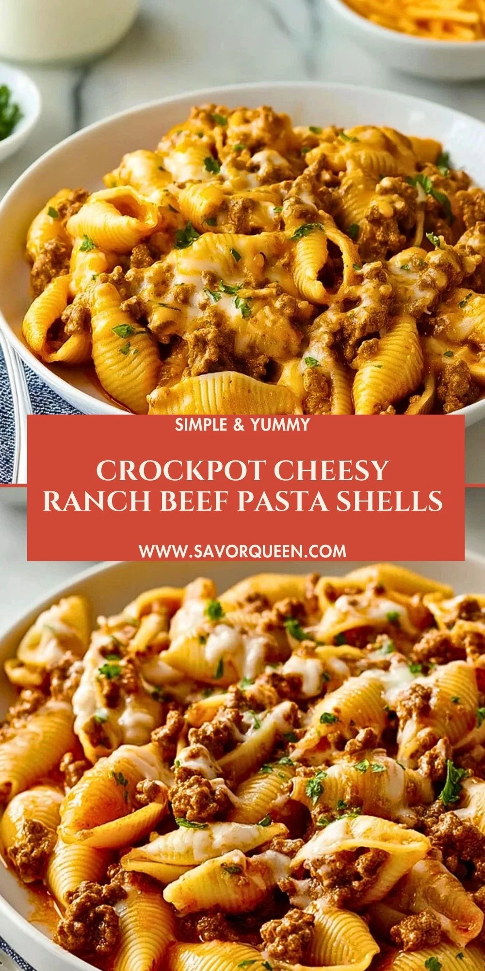 Crockpot Cheesy Ranch Beef Pasta Shells