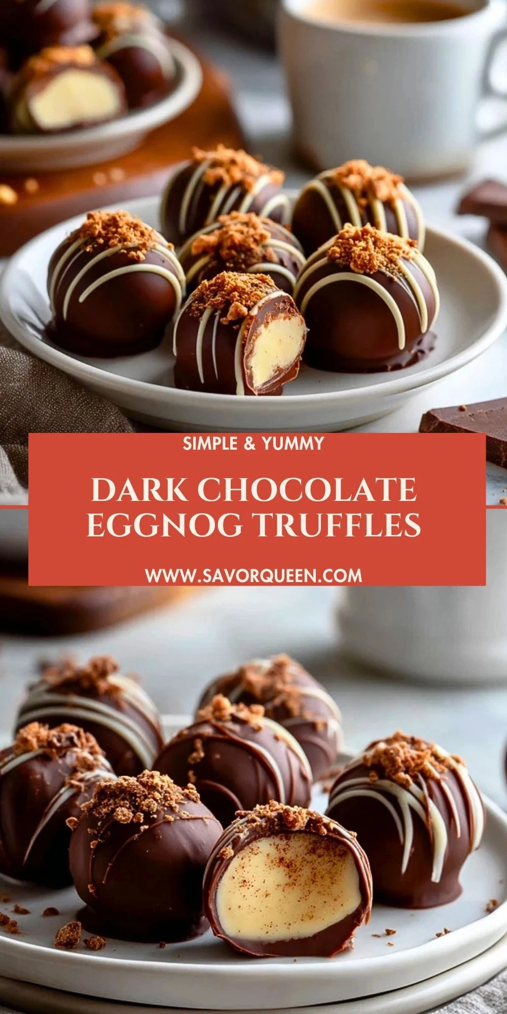 Keywords: dark chocolate eggnog truffles, holiday dessert, Christmas candy, homemade truffles, easy no-bake dessert, festive dessert, chocolate candy recipe, holiday food ideas