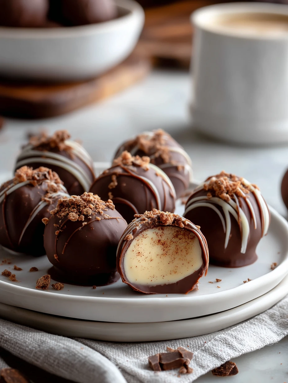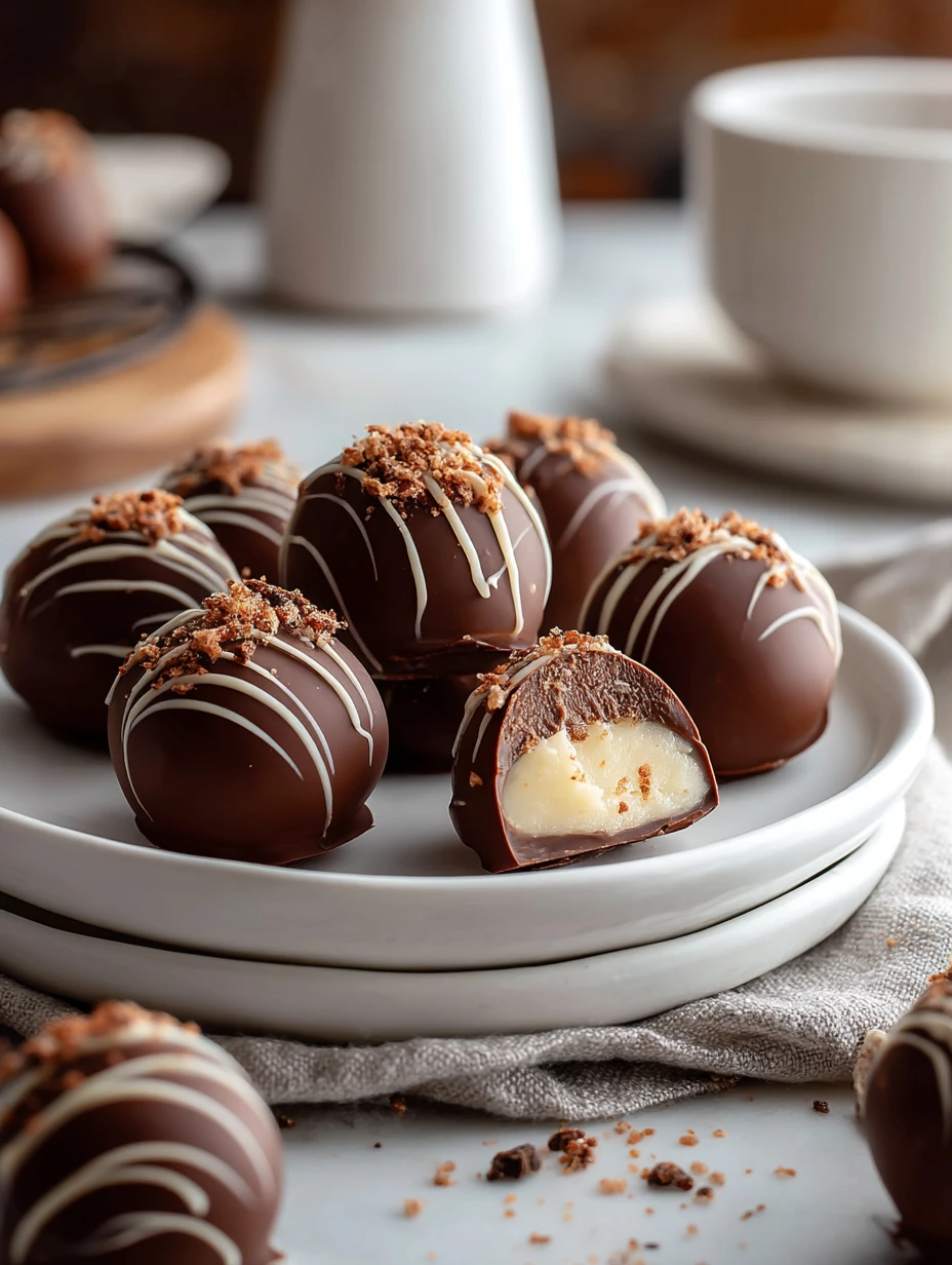 What I really enjoy about these truffles is how special they look once they’re dipped and finished with a white chocolate drizzle. They’re perfect for cookie trays, homemade gift boxes, or those moments when I want a small dessert that tastes luxurious but is surprisingly simple to pull together.