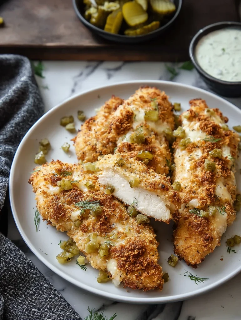Keywords: Dill pickle chicken, crispy baked chicken, Parmesan crusted chicken, easy dinner, crunchy chicken, comfort food