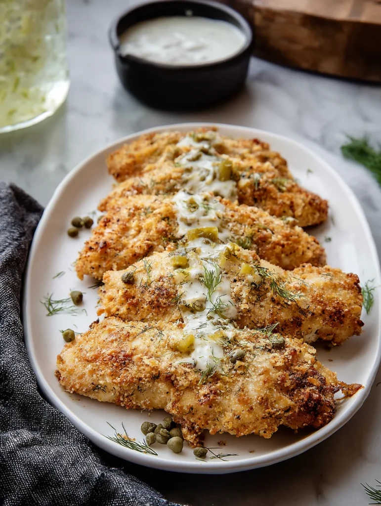 The key lies in the pickle juice marinade that tenderizes the chicken while infusing it with subtle zing. When coated with seasoned panko and golden Parmesan, and finished with a drizzle of creamy ranch or dill sauce, you get the ultimate crispy, juicy payoff. It’s a unique spin on comfort food classics—and you’ll be hooked after the first bite.