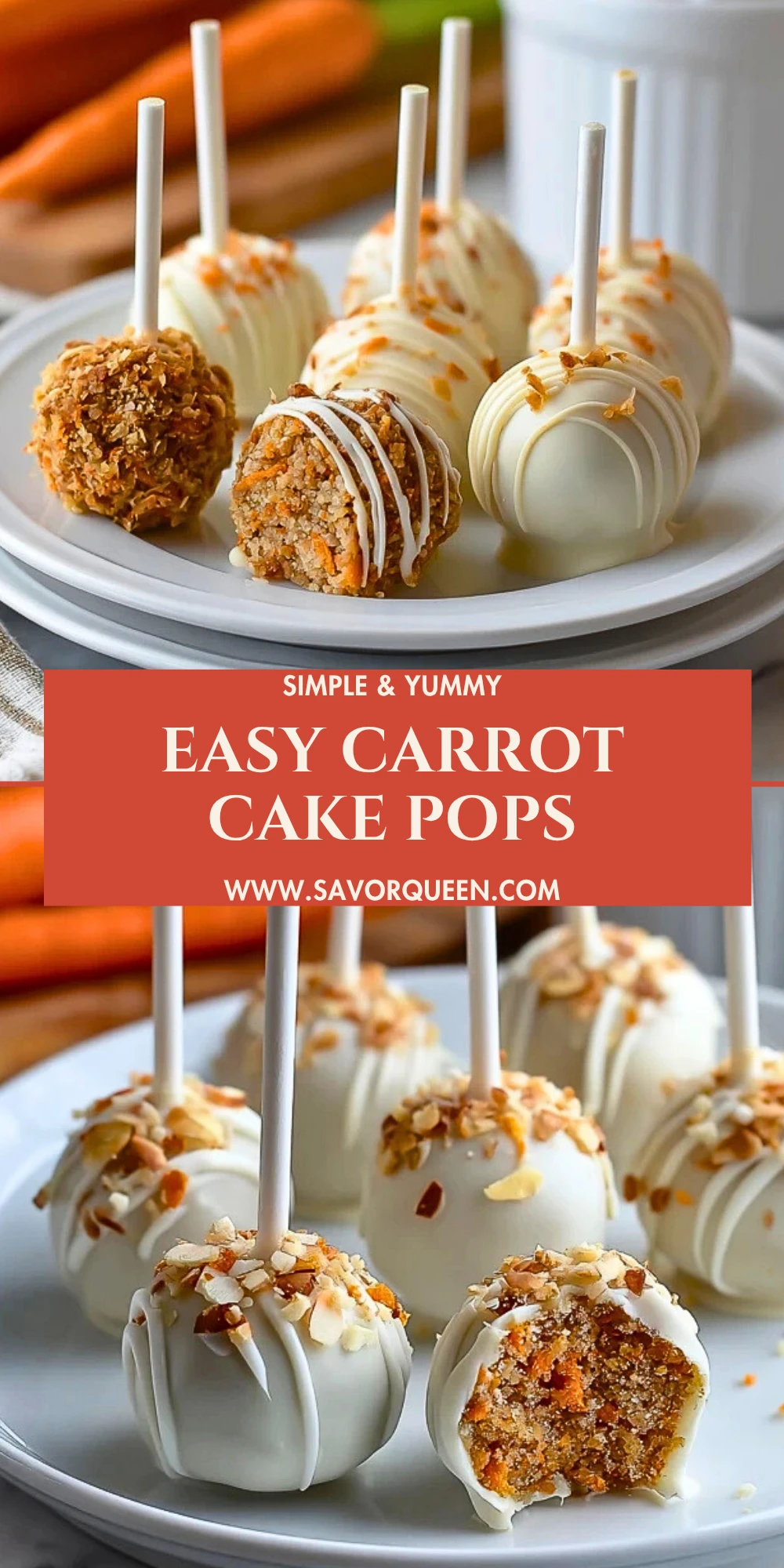 Keywords: easy carrot cake pops, carrot cake dessert, Easter treats, party desserts, easy recipe, dessert ideas, sweet snacks, homemade cake pops