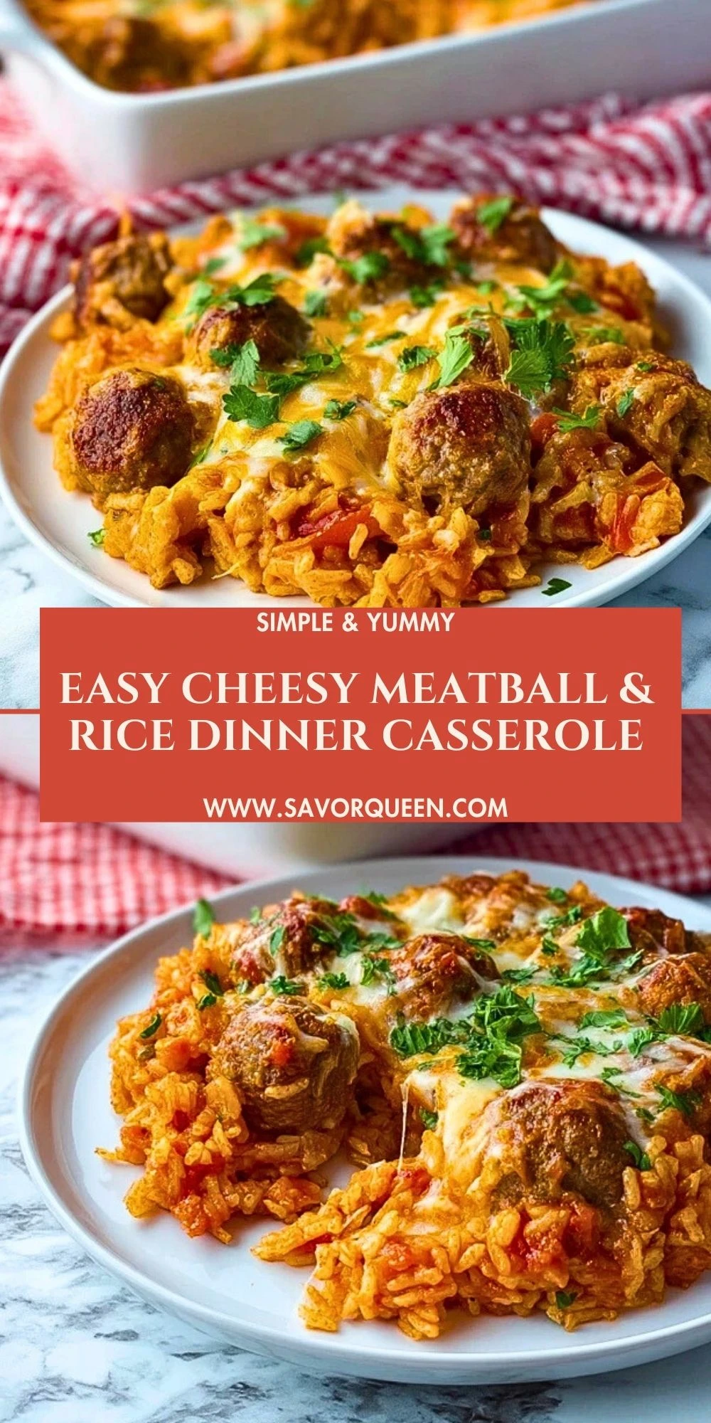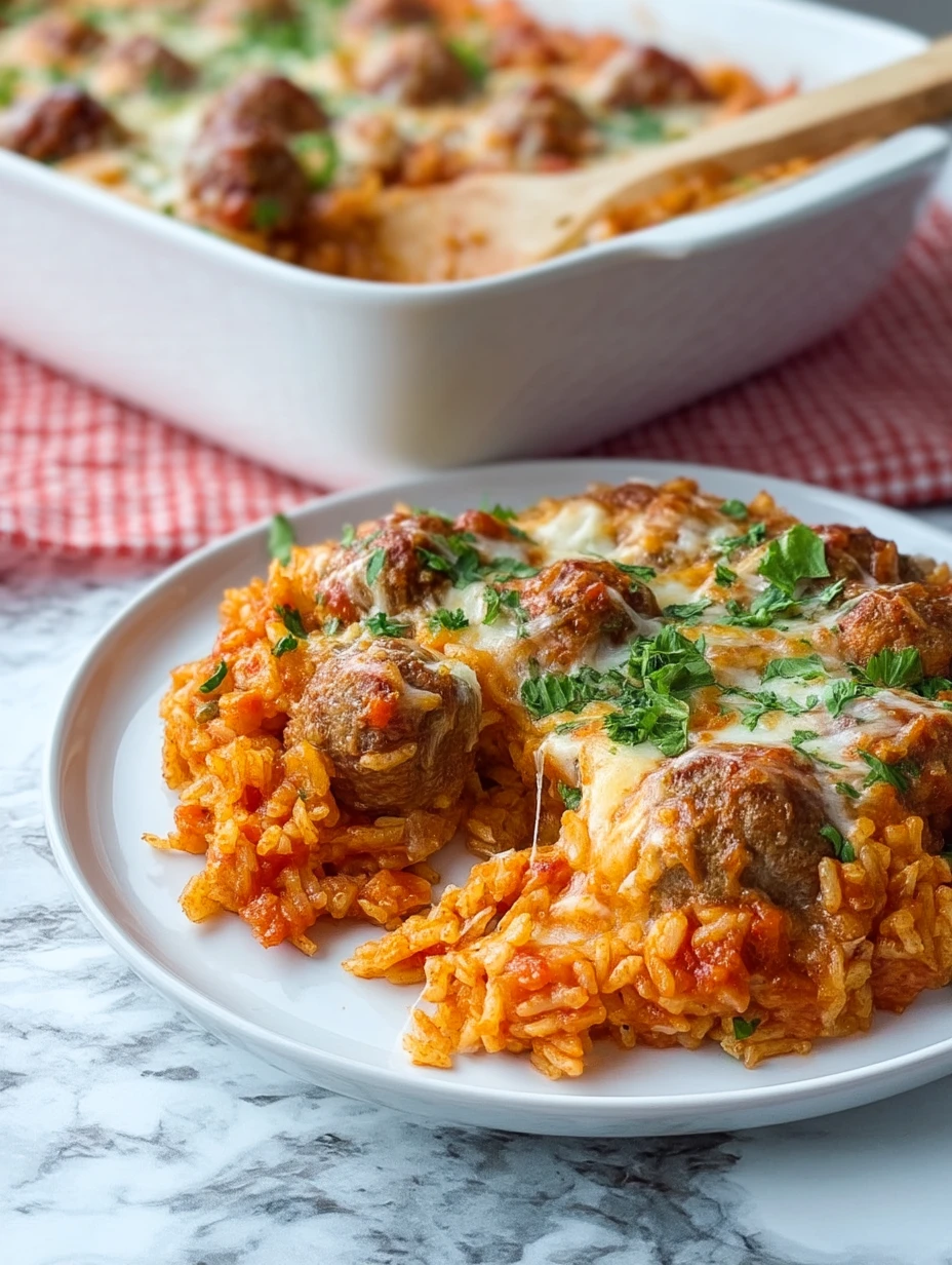 Keywords: dinner ideas, easy recipe, cheesy casserole, meatball bake, rice casserole