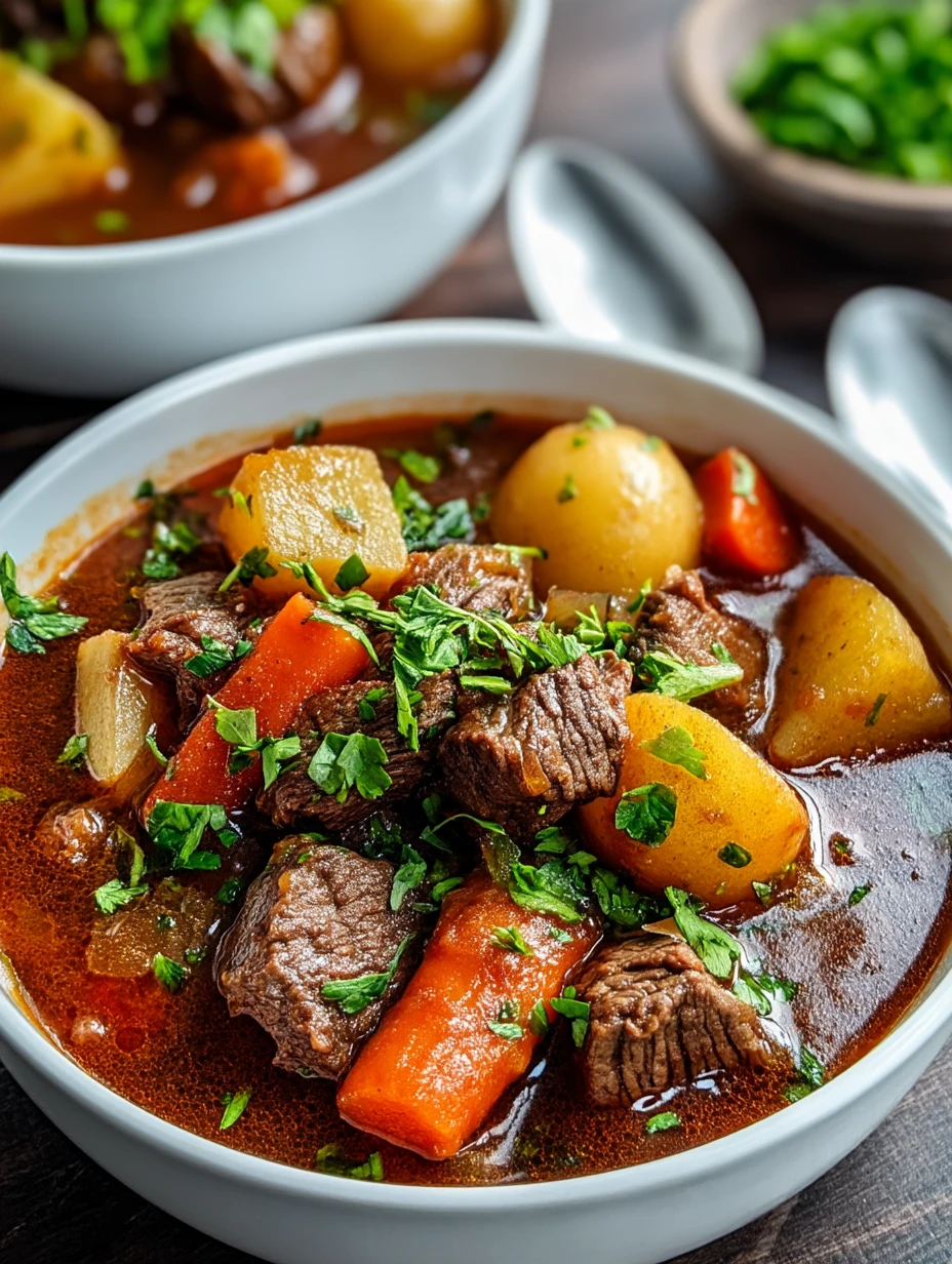 Get ready to cozy up with a bowl of this Easy Homemade Beef Stew — the ultimate comfort food. With tender chunks of beef, creamy potatoes, sweet carrots, and a rich, savory broth, it’s the kind of soul-satisfying meal that fills your home with warmth. Whether you’re after a quick dinner solution, a hearty weekend recipe, or meal prep for the week, this one-pot dish is perfect. It’s a must-try for anyone searching for easy dinner ideas, classic food recipes, healthy homemade meals, or slow-cooked beef favorites that feel like a hug in a bowl.