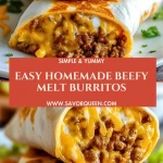 Ready to take your burrito game to the next level? These Easy Homemade Beefy Melt Burritos are the answer to every craving. Packed with juicy, seasoned ground beef, rich nacho cheese, fluffy rice, and a generous splash of sour cream—all wrapped in a warm, soft tortilla—this dish is a crowd-pleasing comfort classic. Whether you need a quick dinner idea, a hearty lunch, or a flavorful addition to your meal prep, this easy recipe delivers bold flavor fast. It’s perfect for anyone looking for easy dinner ideas, quick lunch recipes, or simply irresistible food ideas that hit the spot.