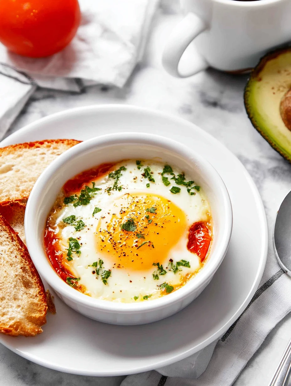 This dish is baked right in the ramekin, no flipping, no mess—just pure eggy goodness. Pair it with creamy avocado slices and fresh cherry tomatoes, and you’ve got a wholesome, protein-rich meal that comes together in minutes.