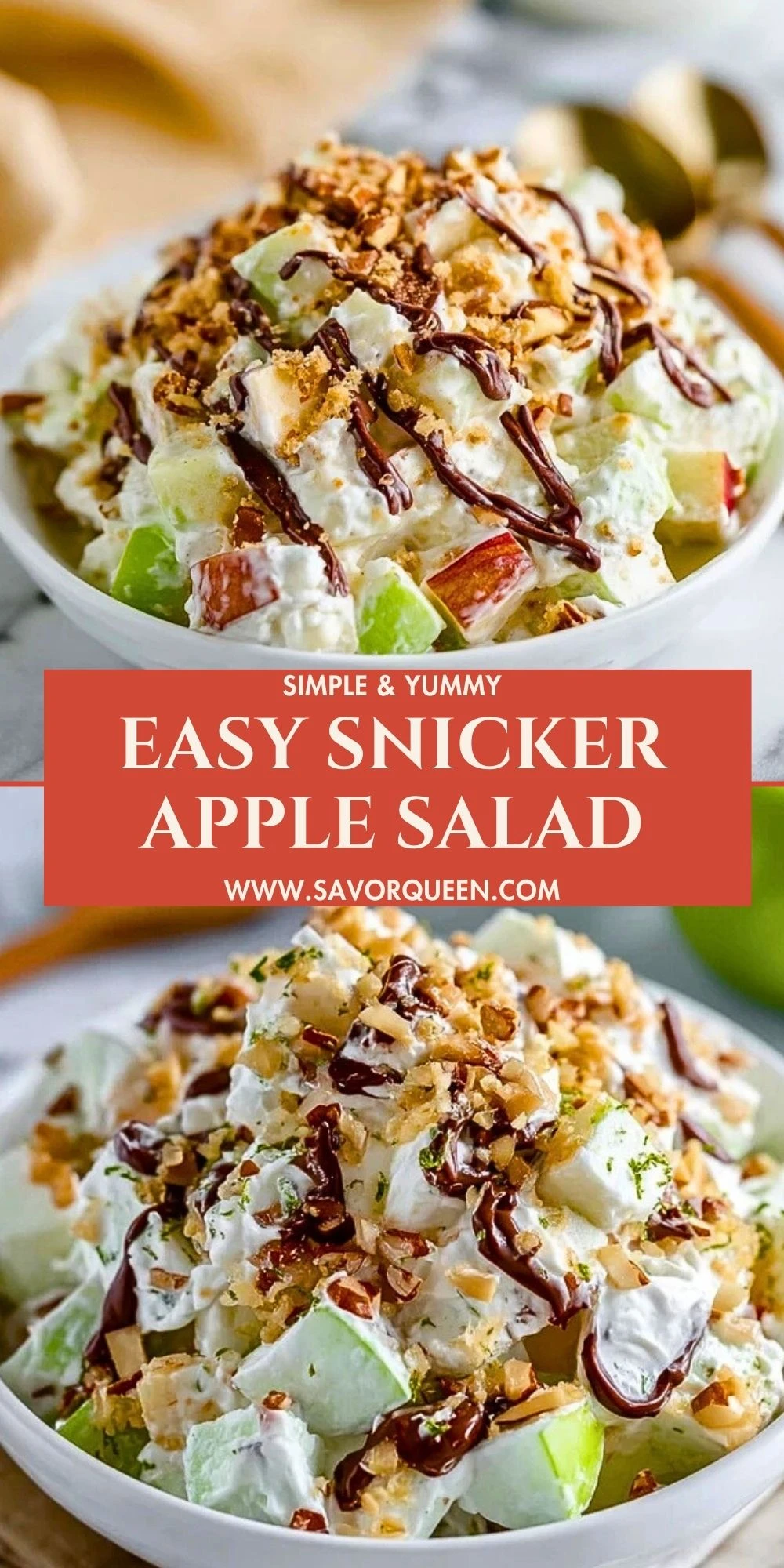 Keywords: easy dessert, apple salad, potluck recipes, quick no bake dessert, snicker salad
