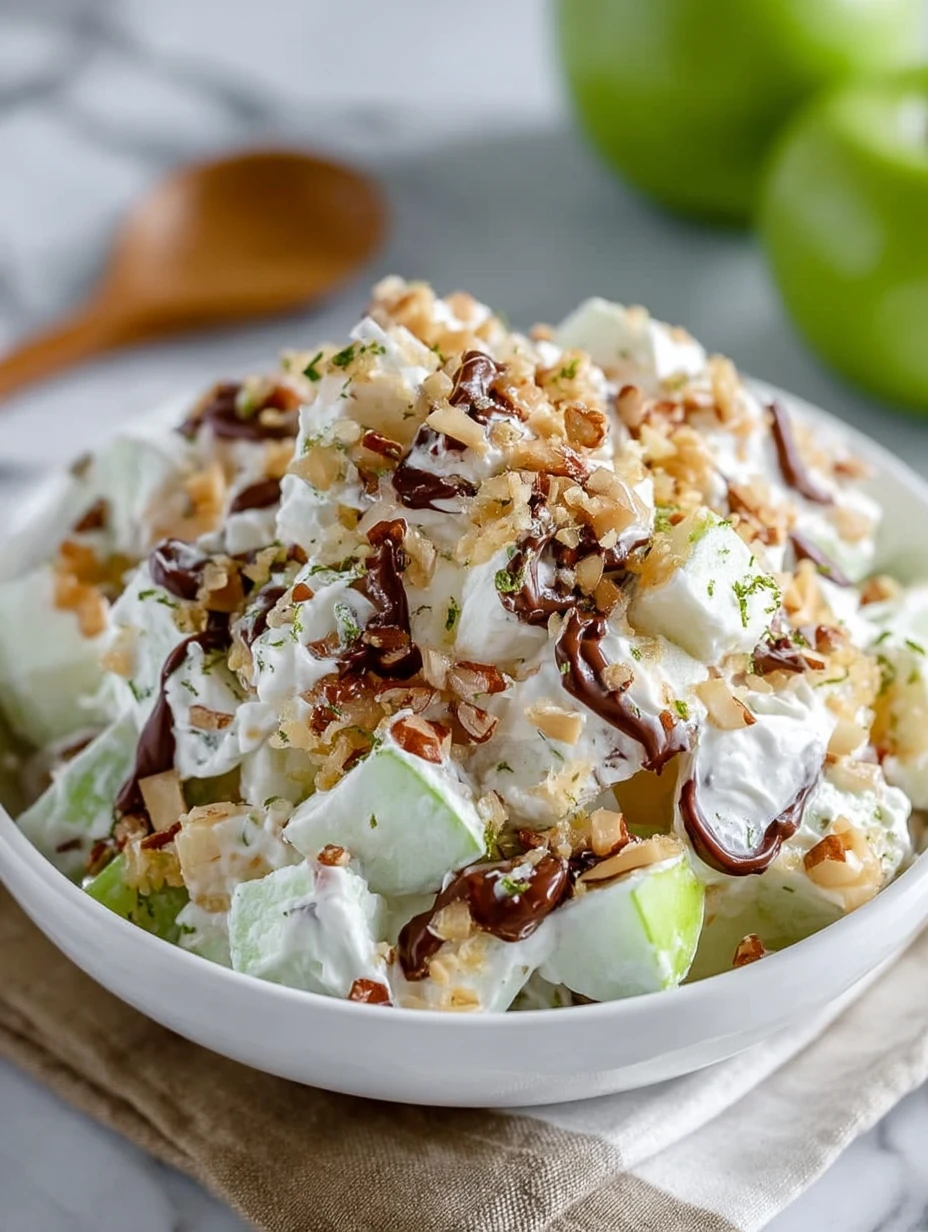 Think of this dish as the ultimate mash-up between a candy bar and a fruit salad. It brings all the textures you love into one refreshing bowl—juicy, tart apples paired with sweet chocolate and gooey caramel, tied together in a creamy, dreamy base. Kids love it. Grown-ups sneak back for seconds. And you? You’ll want to keep this recipe handy all year long.