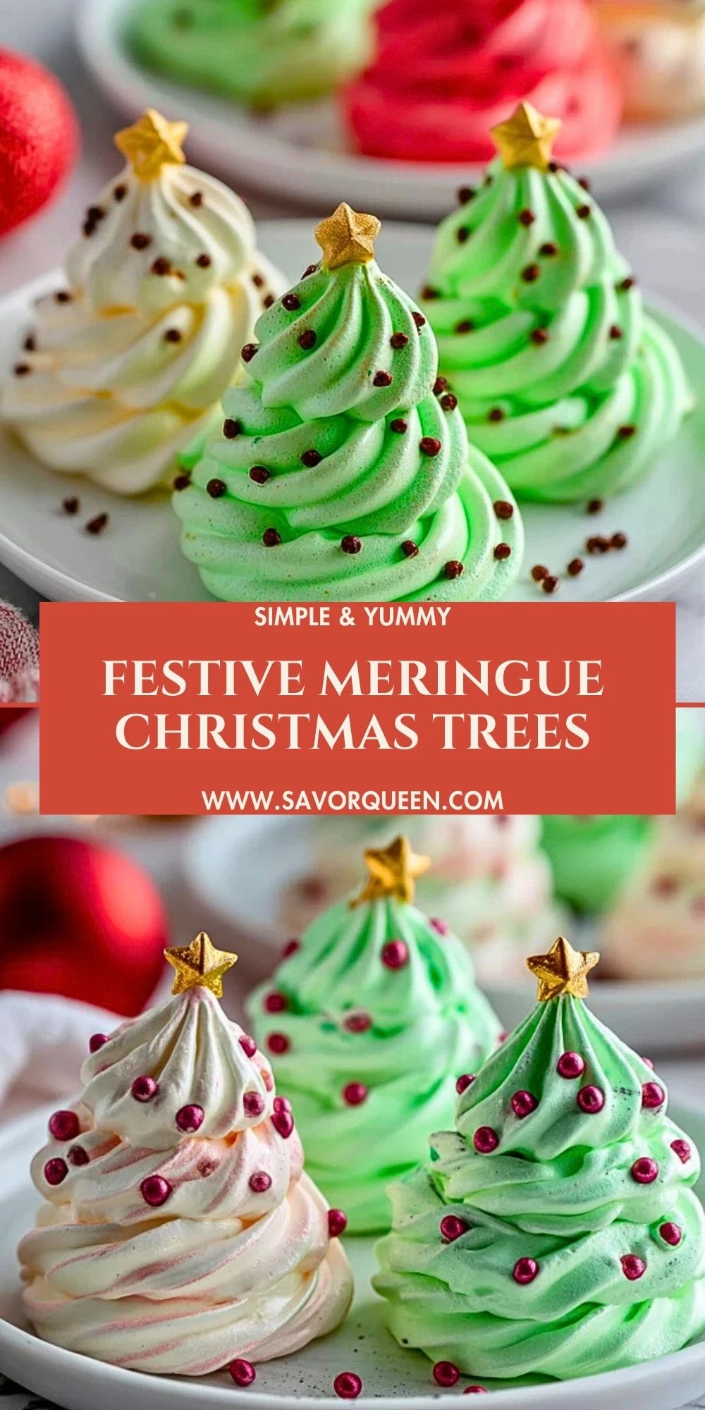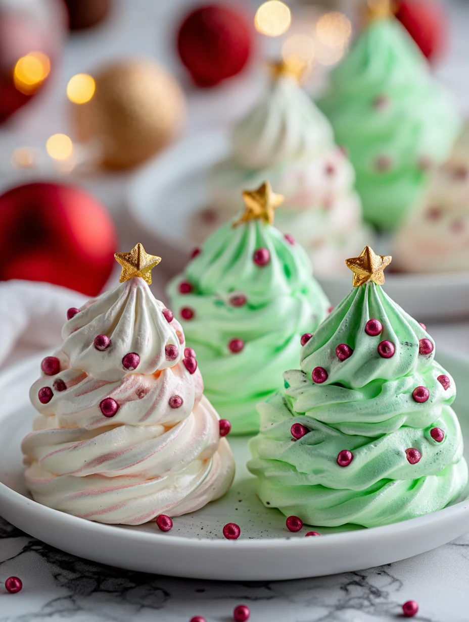 Keywords: christmas cookies, holiday meringue, edible decorations, easy meringue recipe, festive desserts