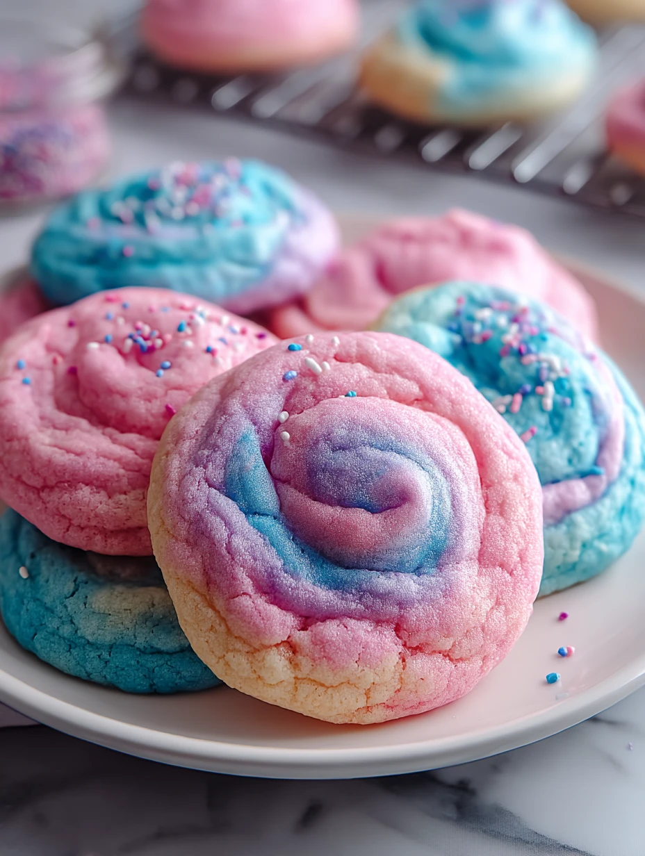 Soft, colorful, and sprinkled with sparkle, Fluffy Cotton Candy Cookies are a dreamy treat that brings whimsical fun to your dessert table. These sugar cookies swirl with pastel pinks, purples, and blues, echoing the sweet nostalgia of cotton candy at the fair. But don’t be fooled by their playful appearance—these cookies deliver rich vanilla flavor and melt-in-your-mouth texture that’s impossible to resist.