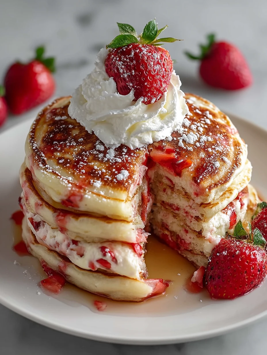 Keywords: strawberry pancakes, cheesecake pancakes, brunch ideas, sweet breakfast, easy pancake recipe