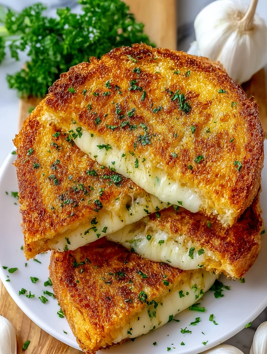 Each bite is packed with flavor: crispy edges from the garlic toast, warm and velvety cheese inside, and a sprinkle of herbs that make this sandwich feel gourmet with almost no effort. And the best part? It pairs beautifully with tomato soup, pasta, or even a handful of chips. Get ready to put your plain grilled cheese on pause—this version might just steal the spotlight.