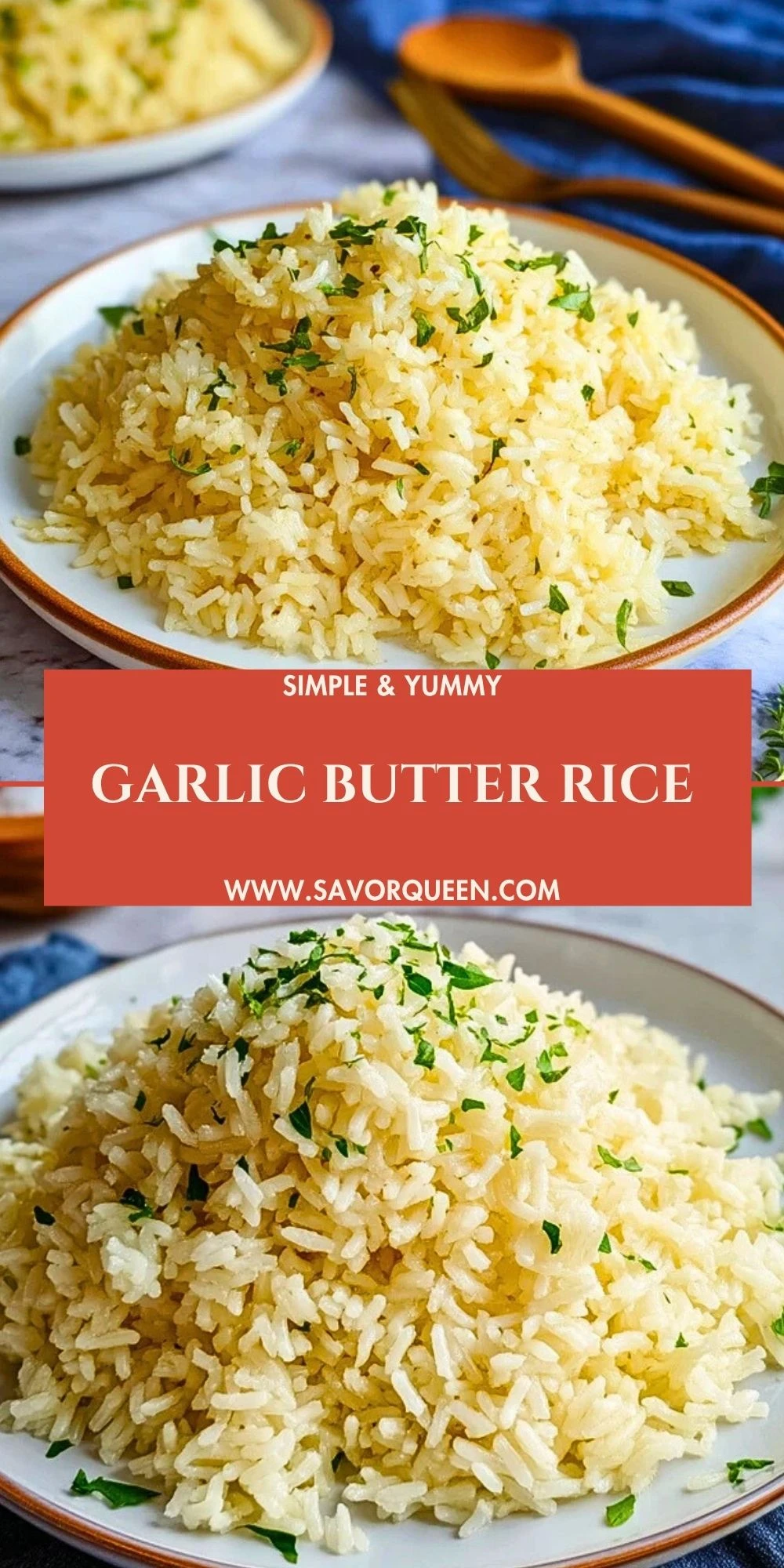 Keywords: garlic rice, butter rice, easy dinner side, rice recipe, stovetop rice