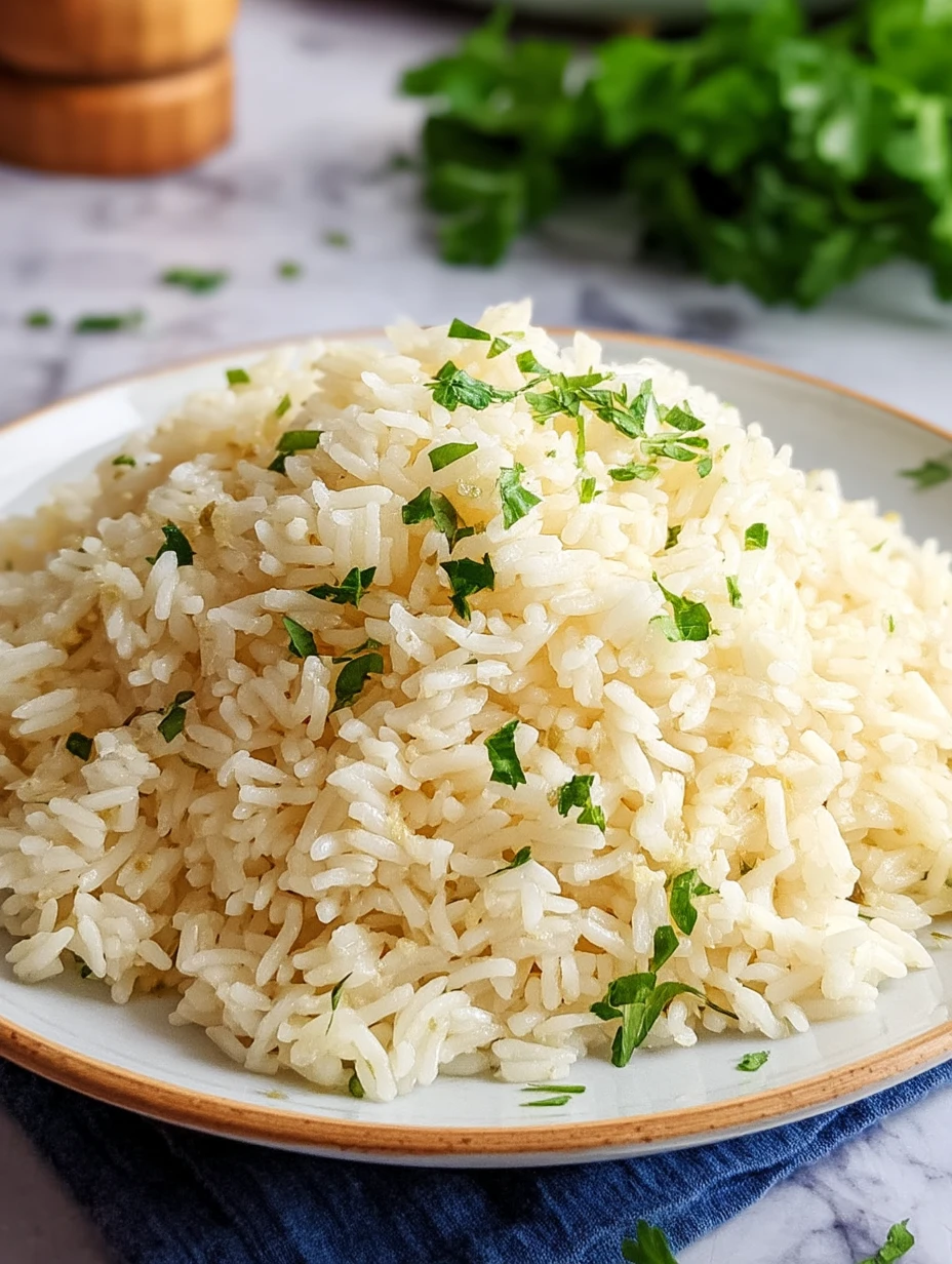 Garlic Butter Rice is best served fresh and hot right out of the pot, but it reheats beautifully too. Store leftovers in an airtight container in the refrigerator for up to 4 days. Reheat with a splash of broth or water to revive its texture. You can also freeze it for up to a month, just thaw overnight in the fridge before reheating.
